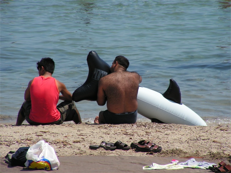 Я уже писала раньше про народные базарчики, так вот, по субботам наш базарчик переезжает сюда, в Артемиду, почти на пляж, и те, кому не хочется сразу с базара – домой, таким оригинальным образом оставляют свои покупки в тени на ветру, чтоб не испортились:)